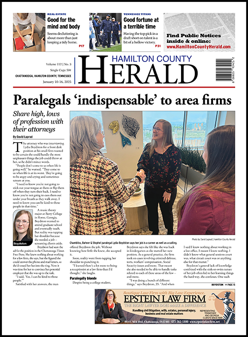 Boydston says she’s been grateful for Shelley’s support, especially since one of the lessons she’s learned at Chambliss is that a paralegal is never done learning.