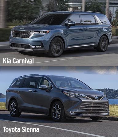 The Kia Carnival Hybrid costs a couple of hundred more to start, but the range-topping SX, even with the $2,500 rear seat entertainment package, comes in thousands under the top-grade Sienna Platinum. The Sienna offers more variety than the Carnival, though, with sporty (XSE) and outdoorsy (Woodland) trim levels and available all-wheel drive.