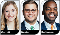 Cecilia Young Garrett, Nicholas Nester and Isiah Robinson will support the firm’s clients in the areas of bankruptcy and creditors’ rights; elder law, estate and trust planning and litigation; labor and employment; and litigation and risk management.