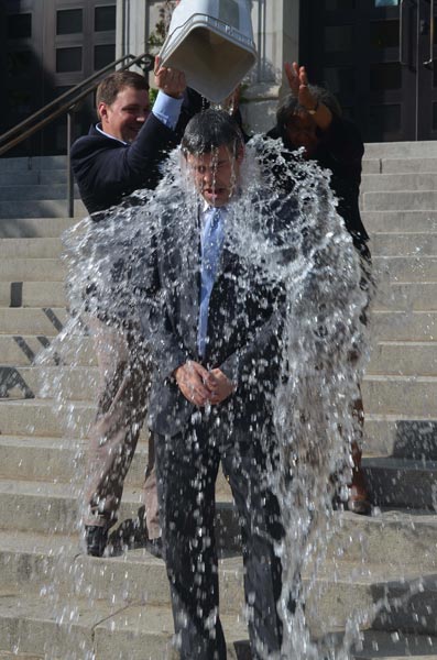 City of Chattanooga Mayor Andy Berke takes the ALS ice bucket challenge on the steps of City Hall. (Aug. 29)