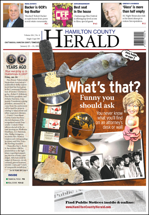 Standefer is not the only member of the Chattanooga Bar Association with unique objects on display at work. On the contrary, the offices of attorneys across the city contain a variety of odd and interesting treasures. From historical artifacts, to hunting trophies, to items of a sentimental nature, lawyers have personalized their work spaces with some surprising effects.