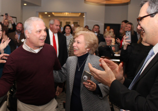 Backer then stepped away from the podium to hug his family, including wife Jennifer Backer, son Jake Backer and others.