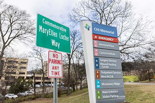 CHI Memorial has designated a portion of road leading to the MaryEllen Locher Breast Center as MaryEllen Locher Way.