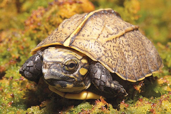 Unlike other endangered turtles reared at the Aquarium this year, this recent addition was rather slow to venture into the world. “The spiny turtles just come right out,” said senior herpetologist Bill Hughes. “But this turtle seemed content to open one end of the egg and look out at the world from inside the shell. It stayed there for two days before emerging.”