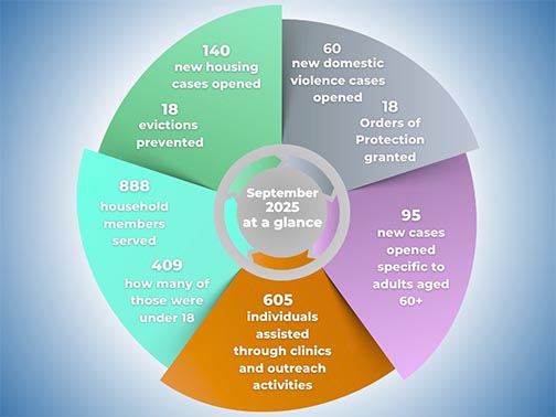 Beyond the lifeline that legal aid provides to individuals and families, it’s also a wise investment that’s been proven to boost the economy. Studies show that legal services generate substantial economic benefits due to reduced strain on courts and emergency services and improved housing stability and public safety. For example, helping a family avoid eviction not only prevents homelessness but also reduces the burden on local shelters, schools and health systems. All of this leads to increased community stability for ourselves and our neighbors.