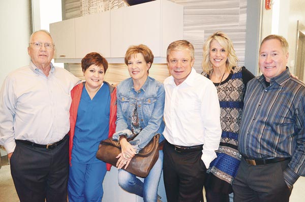 Pictured L-R with Gina are: John Sakich, brother in law; Kristi Evans, friend; Anita Wilt, friend; Stief Counts, friend; and David Sakich, husband.