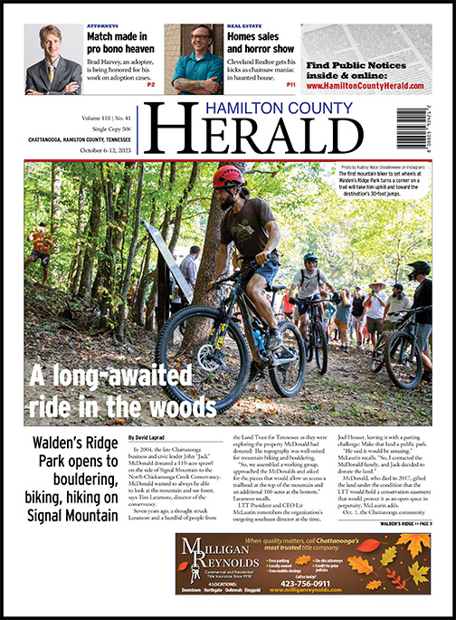 Oct. 1, the Chattanooga community celebrated the generosity of the McDonalds as it opened Walden’s Ridge Park, a 200-acre park featuring more than 10 miles of mountain biking, hiking and trail running, as well as bouldering.