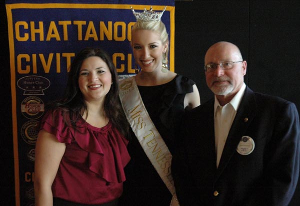 With auctioneer Don Hedrick at the microphone and 2012 Miss Tennessee Chandler Lawson by his side, the Chattanooga Civitan Club raised $7,500 during its nnual Fruitcake Auction, held November 2 at Bessie Smith Hall. The event benefits area children with special needs, including: Big Brothers Big Sisters, Bethel Bible School, FACES, Kids on the Block and T.C. Thompson Children's Hospital. Pictured above: Rebecca Brinkley, Fruitcake Auction chairwoman; Chandler Lawson, 2012 Miss Tennessee; and Jack Chrisman, Civitan president. (Photo provided)