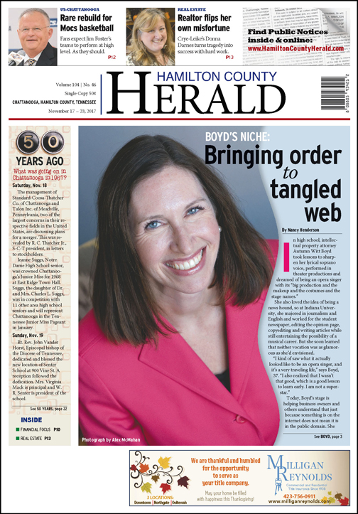 Today, Boyd’s stage is helping business owners and others understand that just because something is on the internet does not mean it is in the public domain. She runs her legal business online and focuses on other online businesses, many run by women. Boyd also has a podcast, so it’s been an interesting journey for the Chattanoogan. A lawsuit against publishing titan McGraw-Hill added to the adventure.