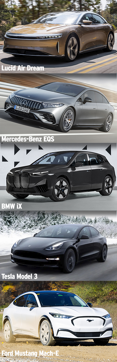 Edmunds has conducted its real-world driving range test on over 40 EV models. The test is a mixture of city and highway driving. Below is a list of five EVs that have driven the farthest in our testing, starting with the longest. We also include EPA-estimated driving ranges as well. All are 2022 models: