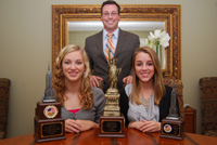 Scott Maucere, one of the coaches of the Chattanooga Southeast Tennessee Home Education Association mock trial team, poses with two of the eight students who competed in the Empire City Invitational in New York in October. From L to R: Hannah Thomas, who won the New York’s Finest 1st Place Best Overall Witness trophy, and Hannah Atherton who received the trophy for Fourth Place Best Overall Witness. CSTHEA placed third in the prestigious event.