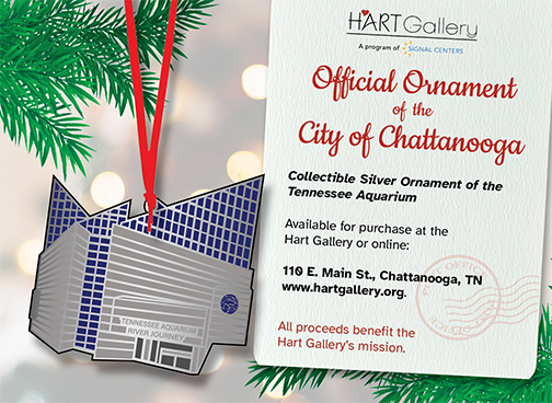 A limited-time ornament of the Tennessee Aquarium will raise funds for the Hart Gallery, a Signal Centers program that supports artists who have a disability or are suffering from homelessness.