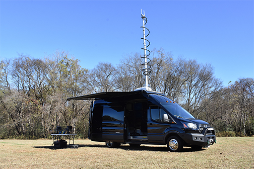 The vehicle is designed to provide internet capabilities necessary to operate all equipment and software and is powered by an onboard inverter system that provides self-sustaining power.