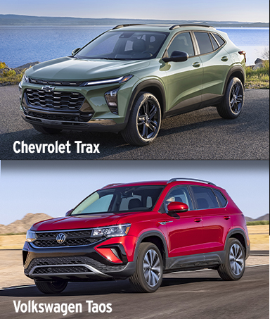 Also vying for your attention is the Volkswagen Taos. Similar to the Trax, the Taos is VW’s smallest crossover SUV, yet it has a nicely appointed interior and feels roomier than you’d expect based on its overall size. Volkswagen also updated the Taos for the 2025 model year with more power, fresh styling and a revised interior. Edmunds’ auto experts have tested both models to find out which is the better buy.