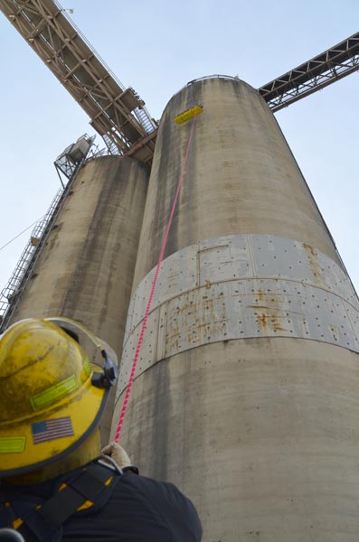 Chattanooga firefighters braved chilly temperatures and gusty winds last week to practice their high-angle rescue skills. The specially trained members of the departments Urban Search and Rescue team set up shop on top of a limestone silo at the Buzzi Unicem USA cement plant on Suck Creek Road. In this exercise, a plant worker on top of the silo falls and is seriously injured. It’s up to the CFD USAR team to safely lower him to the ground. Senior Firefighter Justin Vice stood in for the mock victim. The firefighters methodically secured Firefighter Vice in the Stokes basket and carefully lifted him over the rail. From there, it was 120 feet to the ground. A few minutes later, firefighters on the ground received the victim and got him out of the Stokes basket. Battalion Chief Phil Hyman said the exercise was a huge success and thanked the Buzzi Unicem cement plant for agreeing to participate in the exercise. “It’s great training for our USAR personnel,” said Hyman, “and it’s great safety training for all the workers at the cement plant. Hopefully, we’ll never have to do this for real.” (Photo provided)