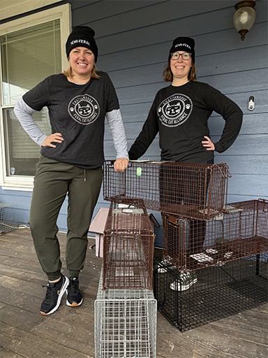 Today, the pair labors together to humanely reduce the local overpopulation of feral and community cats (a community cat also lives outside but might be friendly to humans) through TNR services and education.