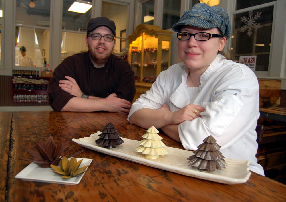 If I want to make her happy, there’s one sure-fire way of doing it, and it’s not giving her a toothy grin. It’s handing her chocolate. And not just any chocolate. Fine chocolate. Exquisite chocolate. Superb chocolate. So I took her to The Hot Chocolatier. I was a neophyte before I went to The Hot Chocolatier. I thought all chocolate was created equal. How foolish I was. At The Hot Chocolatier, the staff makes everything in-house, and they use only real ingredients - nothing artificial. Not only that, but Chocolatier Wendy Buckner, who co-owns the place with her husband, Brandon, uses only chocolate imported from France, Belgium and Switzerland. And the things she does with it are magical. As I talked with Wendy about her creations, she used the word “chemist” more than once. It fits. Wendy fills her space with a remarkable variety of chocolate creations, from dark chocolate pistachio squirrels, double-dipped cherries and caramel bon bons, to Mississippi mud sandwiches, Bailey’s Irish Cream triple chocolate mousse cake and sweet potato ginger cake, to chocolate covered pretzels, milk chocolate malt balls and chocolate toffee pecans. And that’s just touching the tip of the Mexican chocolate pots de crème with caramel mousse.