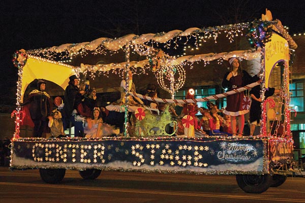 There were also gymnasts doing back flips in the street, young dancers gracefully posing on a float, young women twirling burning batons, and even a talented hula-hooper. While the vintage VWs, lawn mowers, trucks, ducks, and buses decked out in Christmas garb were crowd pleasers, the young men and women performing stole the show.
