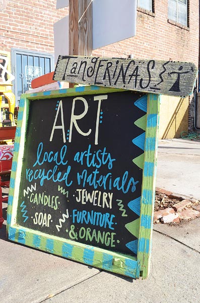 Nicole and Aunt Deb started Tangerinas in 2006 at the Chattanooga Market. Nicole had moved down on her own from Toledo, Ohio, and as the two hung out, they made the furniture and artwork for Nicole’s first apartment. “We had workshops where we’d break out the wine,” she says, laughing. “We didn’t use any power tools, but we did paint – and then fix it in the morning.”