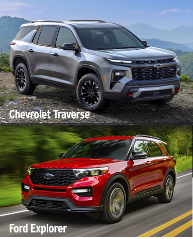 Chevrolet versus Ford. Regardless of the vehicle type, car shoppers often find themselves comparing choices from these iconic American brands. And if you’re thinking about buying a new three-row crossover SUV, you could very well end up cross-shopping the 2026 Chevrolet Traverse and 2026 Ford Explorer.