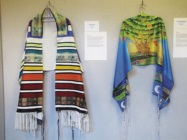 A display of contemporary and traditional Jewish prayer shawls called tallitot from the community, around the country, and Israel is on exhibit at the Jewish Cultural Center through January 15. Made by 21 artists, the tallitot showcase a diversity of design and styles. Tallit in the exhibit include woven, embroidered, hand-painted, appliqued, and tie-dyed. A biography of each artist and information about each tallit is also included. Tallitot owned and used by community members are included with the exhibit as examples of how this religious tradition is locally maintained. According to Ann Treadwell, Jewish Federation Program Director, “This exhibit represents an inspiring selection of fabric art that contains a strong spiritual message.”