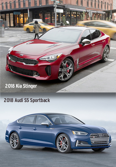 Audi says the A5 Sportback will reach 60 mph in 5.7 seconds and the S5 Sportback in 4.5 seconds. Kia expects the Stinger to reach 60 mph in 5.9 seconds and the Stinger GT in 4.7 seconds. Based on our evaluations so far, these manufacturer claims seem about right.