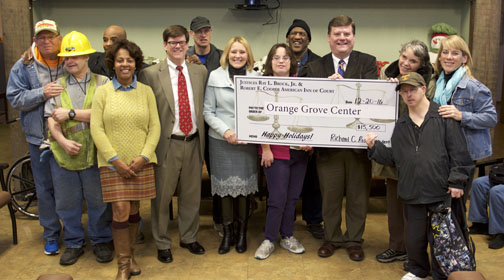 Several members of the Justices Ray L. Brock Jr. - Robert E. Cooper American Inn of Court visited the campus of Orange Grove Center this month and presented Orange Grove with donations totaling $15,500.
