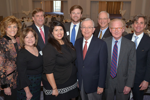 The Chattanooga Bar Association honored the following members recently during its 121st annual meeting at Read House. Front row from left: Glenna Ramer (Harry Weill Zealous Practice of Service Award), Stephanie Rogers (YLD Volunteer of the Year Award), Justice William M. “Muecke” Barker (Jac Chambliss Lifetime Achievement Award) and William P. Aiken Jr. (Ralph H. Kelley Award). Back row: Lynda Minks Hood, recognized for 25 years as the CBA’s executive director, Steven Jacoway (2019 board president), the Hon. Alex McVeagh (Albert L. Hodge Volunteer Award), William G. “Bill” Colvin (President’s Award) and Marc Harwell (2018 board president).