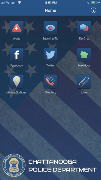 Users of “Chattanooga PD Mobile” can receive safety alerts, view CPD social media sites, find department contacts and submit anonymous crime tips.