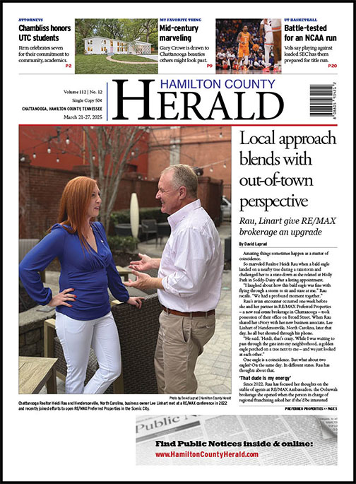 Rau’s avian encounter occurred one week before she and her partner in RE/MAX Preferred – a new real estate brokerage in Chattanooga – took possession of their office on Broad Street. When Rau shared her sFtory with her new business associate, Lee Linhart of Hendersonville, North Carolina, later that day, he all but shouted through his phone.