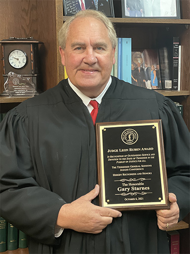 The General Sessions Judges Conference presented Hamilton County General Sessions Judge Gary Starnes with the 2021 Leon Ruben Memorial Award for Excellence at its spring 2022 convention.