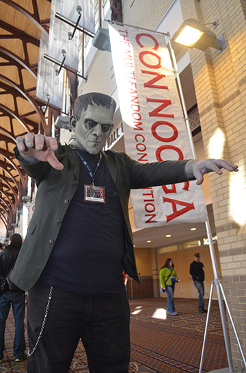 Held once a year, Con Nooga is best described as a convention for fans of the fantastical. It offers, first and foremost, a chance for people who love various science fiction and fantasy worlds to express their affection. Whether you’re into “Doctor Who,” “Star Trek,” or “Ghostbusters,” you can dress up as your favorite character and have a blast. My favorite part of Con Nooga is taking pictures of people in costume. Some folks even stay in character. Frankenstein only groaned in response to my requests, and the fellow who dolled up as Captain Jack Sparrow spat a stream of drunken gags in the pseudo-British accent actor Johnny Depp uses when playing the part.