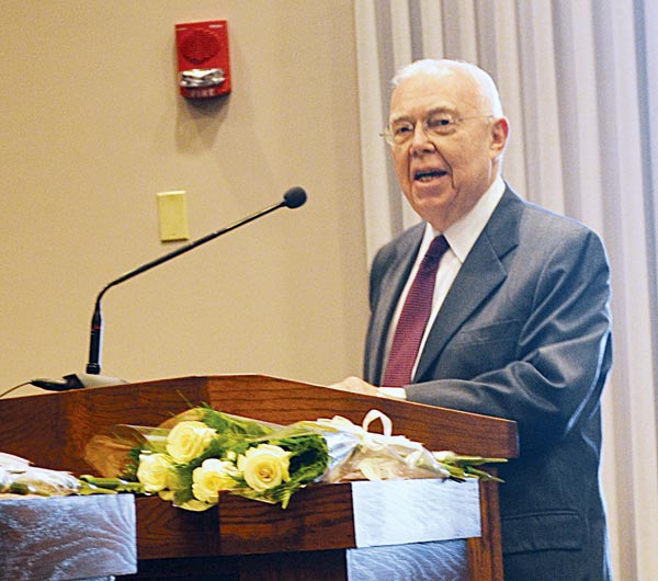 Thomas Kale, reading from a resolution he and Fred Moore had written, said it would take many pages to list the accomplishments of Silas Williams, Jr., who passed away December 10, 2011. ”He lived his life in service to others. He was a devoted husband and father, a superb attorney and a wonderful law partner. His graciousness and strong values earned him the respect of his peers and set him apart as an example of professionalism.”