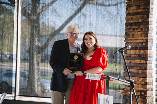 House provided historical context as she returned to the podium to announce the recipient of the Bruce C. Baily Volunteer Lawyer of the Year, which goes to a private attorney who has gone “above and beyond” in their support of Legal Aid’s clients.