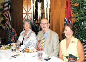 Jennifer Grayson gave the invocation and pledge, and then guests began to dig into the mashed potatoes, green beans, chicken wings, rolls and pecan pie. A reminder was given about the gift baskets that were still on auction till the conclusion of the meeting, and thereafter the guests at each table were introduced.