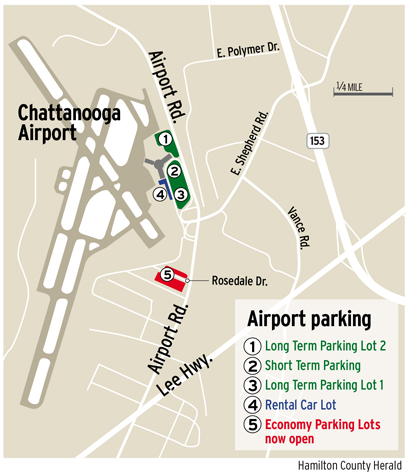 The newly built economy parking lot at the Chattanooga Airport is now open, offering shuttle service to the terminal.