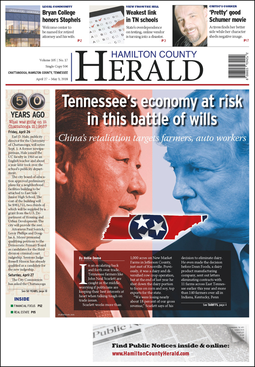 Jai Templeton, Tennessee’s commissioner of agriculture, points out that China is one of the state’s largest foreign markets for agricultural products, sourced from across the region and shipped through Tennessee. In 2016, Tennessee exported nearly $1.5 billion in farm commodities worldwide. Of that total, $422 million was soybeans, $96 million was cotton and $78 million was tobacco.