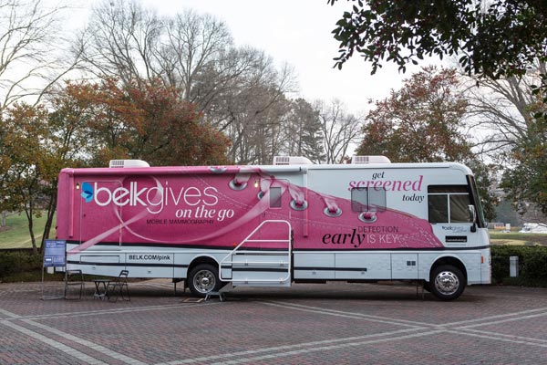 “Having the BelkGives on the Go Mobile Mammography Center travel to the cities where our associates and customers live and work underscores what we’ve being saying for a long time – awareness and early detection saves lives,” said Jessica Graham, Belk’s vice president of communications and community relations. “We’re excited to take Belk’s fight against breast cancer on the road.”