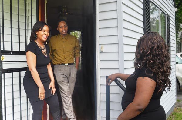 Blue and white balloons abounded on mailboxes and for sale signs throughout Hamilton County last weekend as the Greater Chattanooga Association of Realtors celebrated the second annual Open House Weekend in style. According to the MLS, Realtors throughout the region hosted just over 200 open houses on Saturday and Sunday, giving buyers a chance to find their dream home early in the most active season for the real estate market. Here, Erica Fears, owner of Southern Home Realtors, and her son welcome a potential buyer to her 5009 Carolyn Lane listing. (Photo by David Laprad)