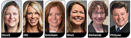 The new additions to the Bar Foundation include attorneys Cathy Dorvil, Ellie Hill and Laura Ketcham, bankruptcy court trustee Kara West, career law clerk Carrie Stefaniak, and Judge Robert Philyaw.
