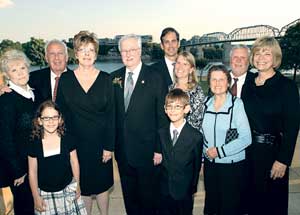 The Chattanooga Bar Association on April 21 hosted a retirement celebration at the Chattanooga Theatre Center for the Honorable Howell N. Peoples, who stepped down as chancellor of Part II of Hamilton County Chancery Court on March 31, 2010. Here, Peoples is pictured at the reception with his family.