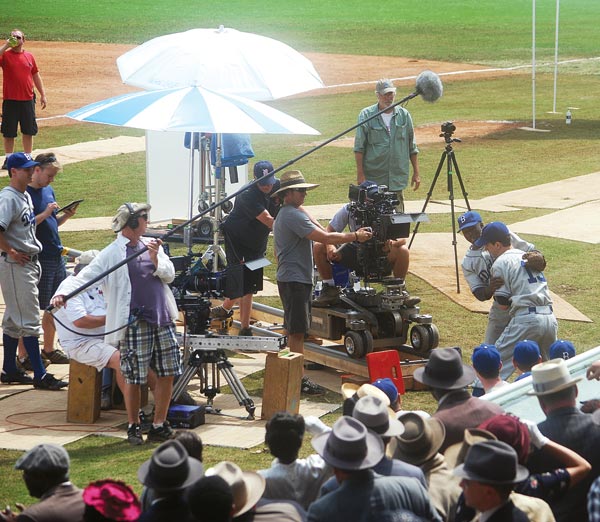 Two expensive-looking cameras capture all of the action, and then the crew begins to set up for another take. This isn’t the first time many of them have labored to tell an inspiring sports drama. They did it in 2003 while shooting the acclaimed “Friday Night Lights.” Today, they’re making a movie called “42,” named after the number on Robinson’s uniform.