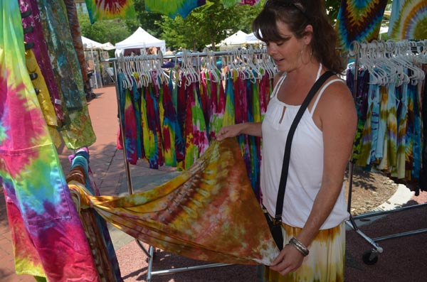 Julie Whitehead of Chattanooga-based Dye Worx displays one of her handmade tie dyed accessories. More at www.DyeWorx.com.