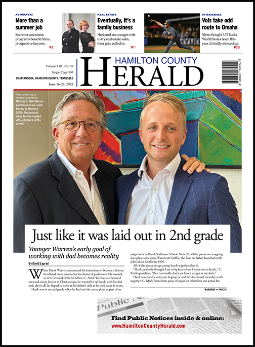 When Hank Warren announced his intentions to become a lawyer, he offered three reasons for his choice of profession: He wanted to drive to work with his father, C. Mark Warren, a renowned personal injury lawyer in Chattanooga, he wanted to eat lunch with his dad and, above all, he hoped to work at his father’s side as he tried cases in court.