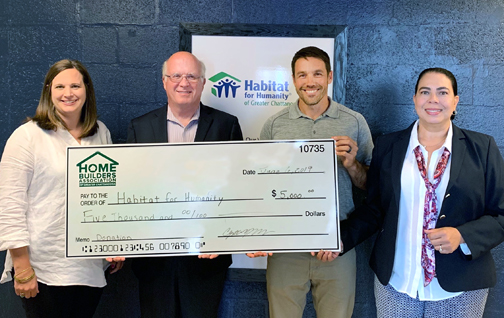 Representatives from the Home Builders Association of Greater Chattanooga recently visited two local organizations to present cash donations on behalf of the residential builder and developer group.