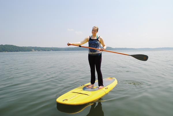 Graham reiterates that the great thing about stand up paddle boarding is that if someone has a board and paddle they can go pretty much anywhere, including lakes, creeks, quarries, and other bodies of water. “It’s kind of calm and a great workout without feeling like you are working out,” she says. “Because you are constantly trying to keep the boat steady, and constantly having to engage your stomach and your legs, and you are paddling with your arms, you are getting a great work out but not paying attention to the fact that you are working hard because it is so nice and you can wander down and see wild life.”