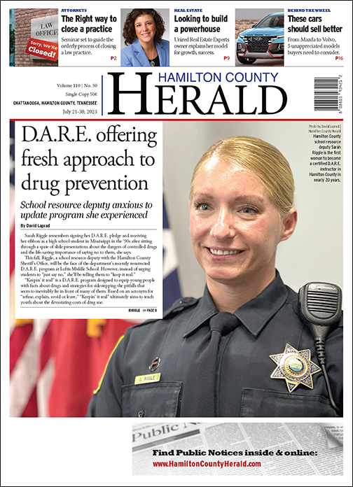 Riggle is the third Hamilton County SRD to become a D.A.R.E. instructor during Garrett’s tenure; she’s also the first woman with the department to complete the certification in nearly 20 years. When classes at Loftis begin this fall, she’ll follow in the footsteps of two fellow school resource deputies who have already graduated classes of around 80-each at Chattanooga School for the Liberal Arts and East Hamilton Middle School.