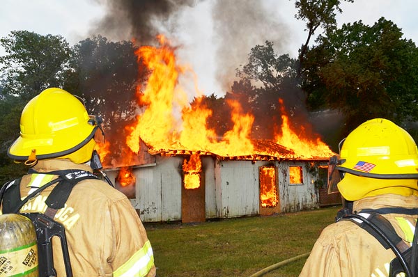 Instructors started the fire at 10 a.m.; most of the single-story, wood-frame structure had burned to the ground within 20 minutes. To help it along, it was loaded with pallets, straw, and shredded paper.