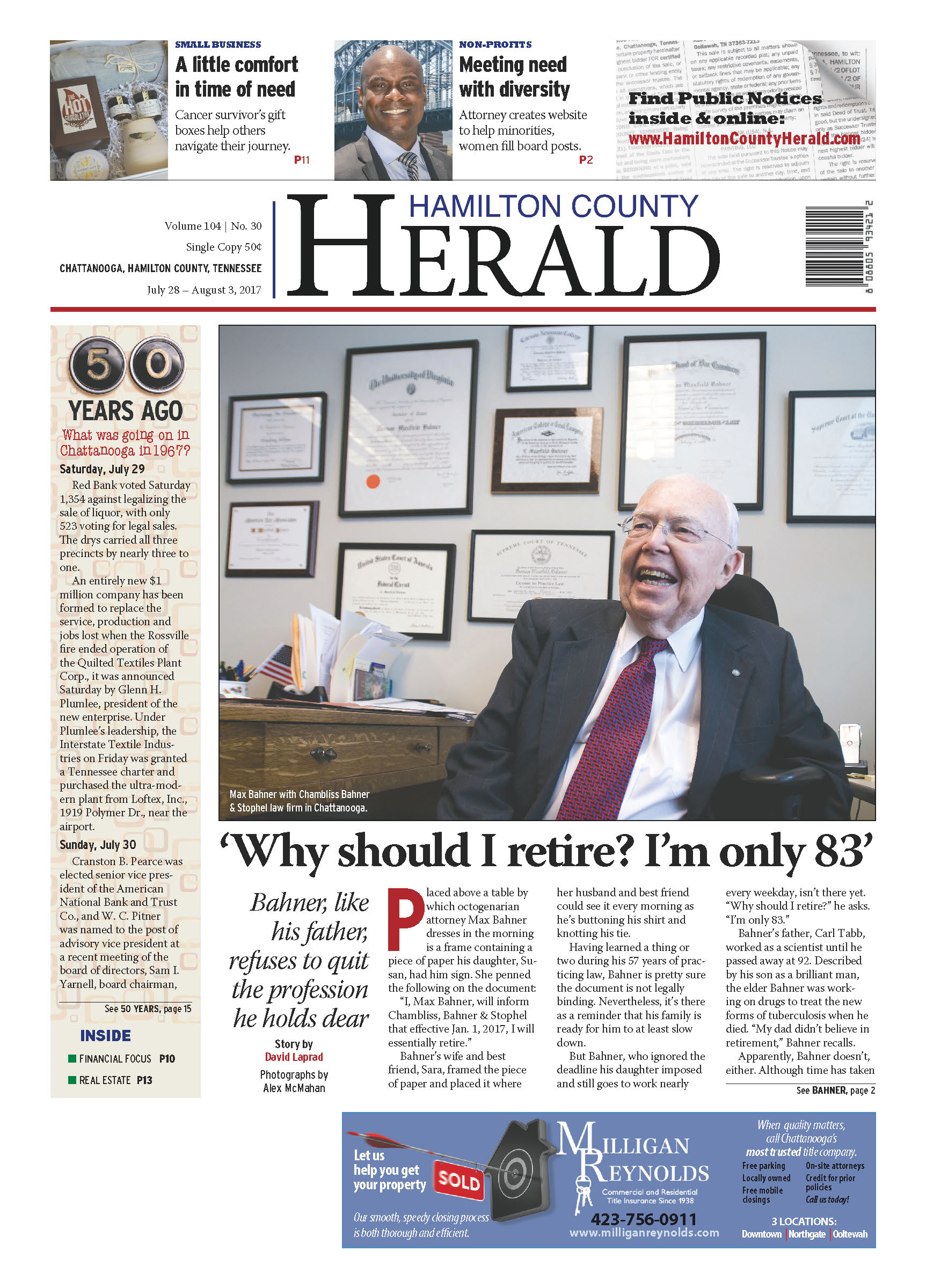 “I, Max Bahner, will inform Chambliss, Bahner & Stophel that effective Jan. 1, 2017, I will essentially retire.”