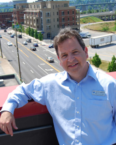 From the roof of Remax Renaissance on Cherokee Boulevard, Tony St. Charles can see most of his world. He points to One North Shore and Bridgeview, attractive downtown living accommodations across the street from where he works, noting how the former is nestled alongside Renaissance Park. Across the river, between the Market and Walnut Street Bridges is Museum Bluffs. Behind him, high on Stringer’s Ridge, is The Pinnacle, a condominium complex where he currently has listings. He can also see Signal Mountain, where he lives.